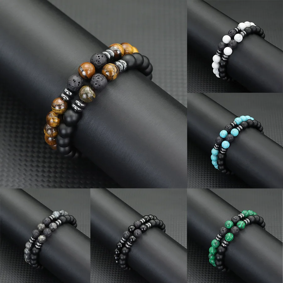 اسم المنتج: طقم أساور رجالية مرصعة بالأحجار،